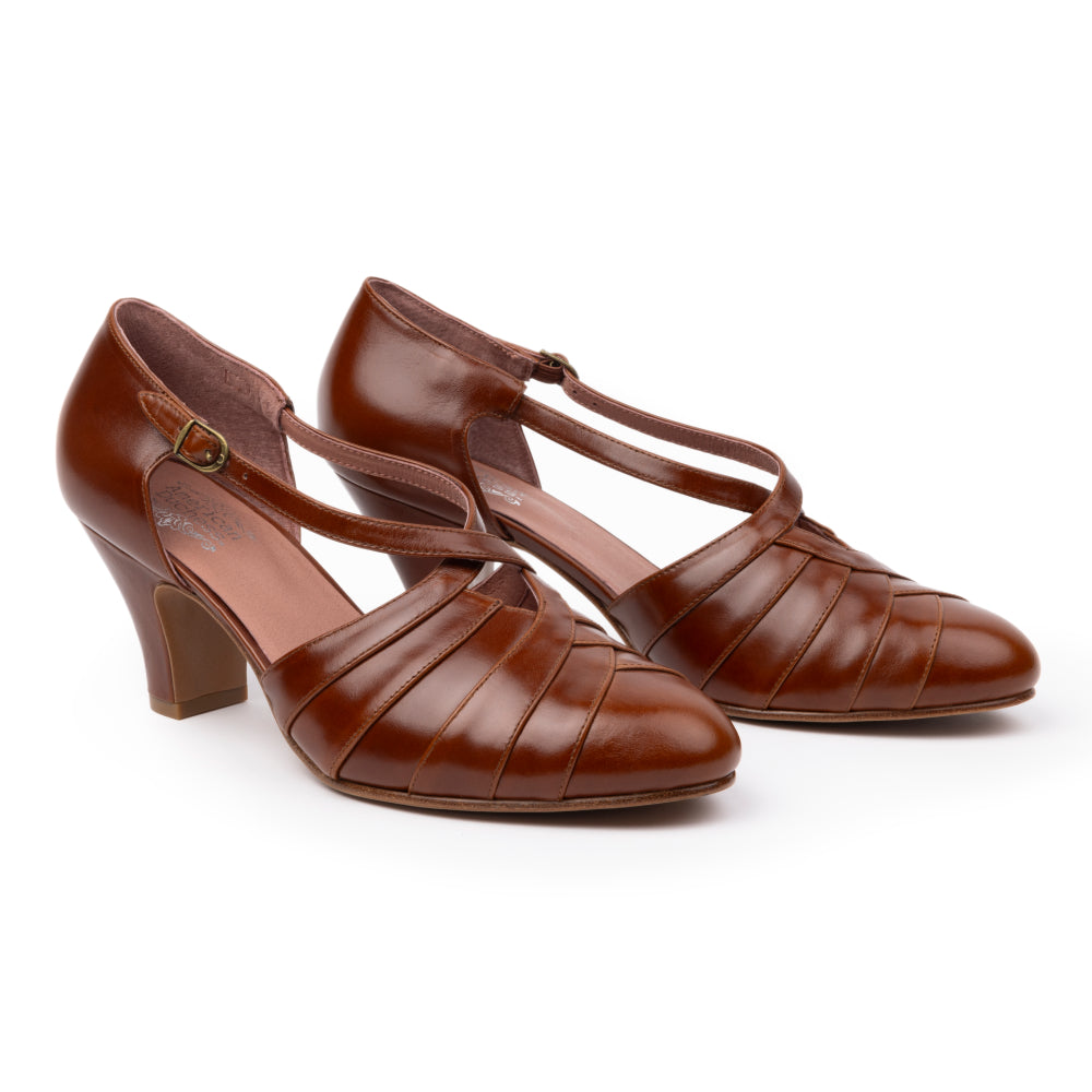 Looking for a shoe that combines the glamour of old Hollywood and all-day wearability? Look no further than Melrose! Based on period originals, these beautiful pumps capture the silhouette and style of the 1930s with sleek straps criss-crossed over the instep, a keyhole opening over the vamp, and gorgeous leather piecing. The straps feature hidden elastic inserts, for additional comfort and ease. Melrose features our classic 2.5"/ 6.35 cm Spanish heel, which is perfectly balanced for comfort. Whether you're donning daywear or evening wear, Melrose fits the occasion.