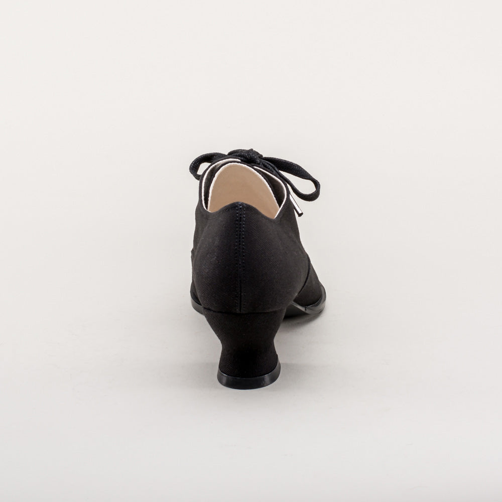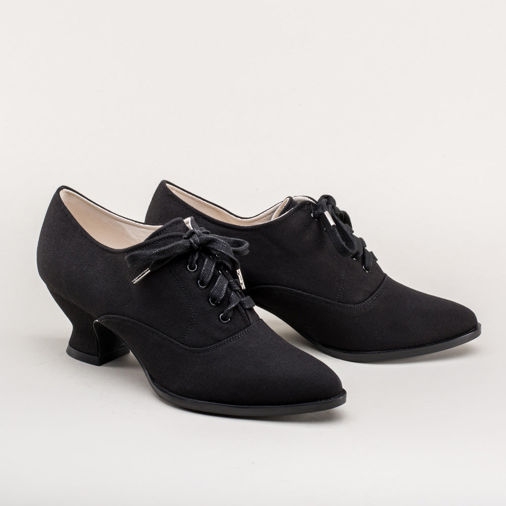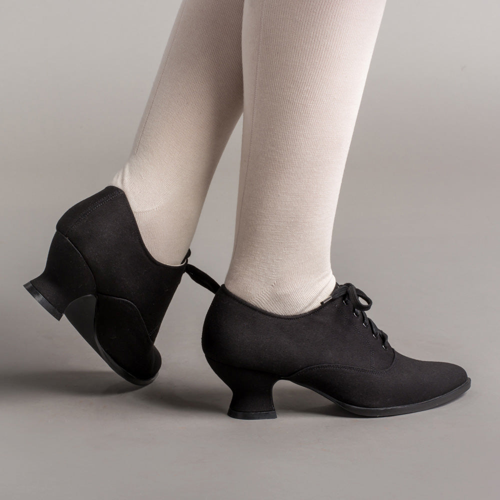 Meet the Kedwardians, the perfect light and breezy sporting shoes from the turn of the 20th century. Based on many original example of early ladies' tennis shoes, the Kedwardians are made inside and out in cotton canvas paired with practical rubber soles and a stable and comfortable 2 in / 5 cm French heel. These Edwardian tennis shoes are leather-free, lightweight, easy to clean, and extremely comfortable.
