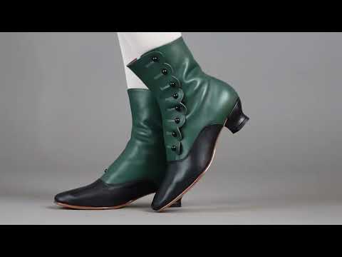 These mid-Victorian and Bustle Era boots have square toes, a short heel molded from an original, and an attractive scalloped edge and top, making them practical yet feminine, and ideal for a fashionable Victorian lady.