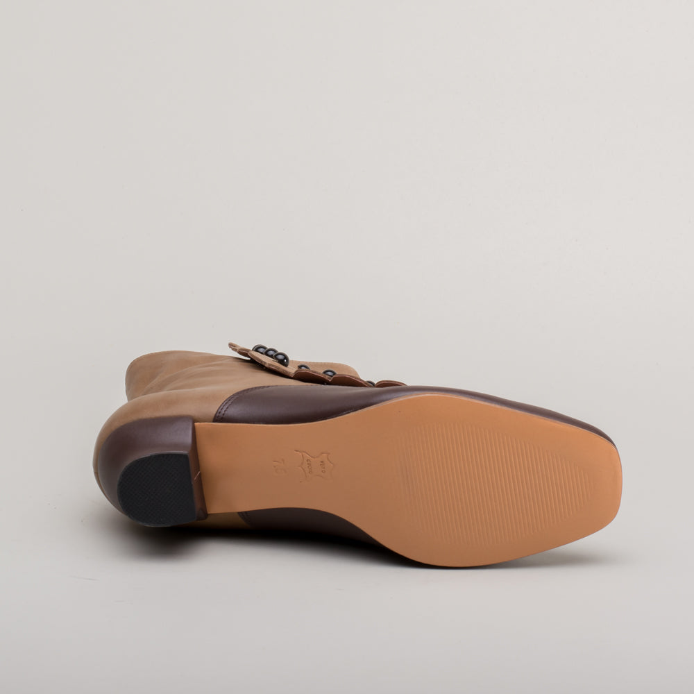 These mid-Victorian and Bustle Era boots have square toes, a short heel molded from an original, and an attractive scalloped edge and top, making them practical yet feminine, and ideal for a fashionable Victorian lady.