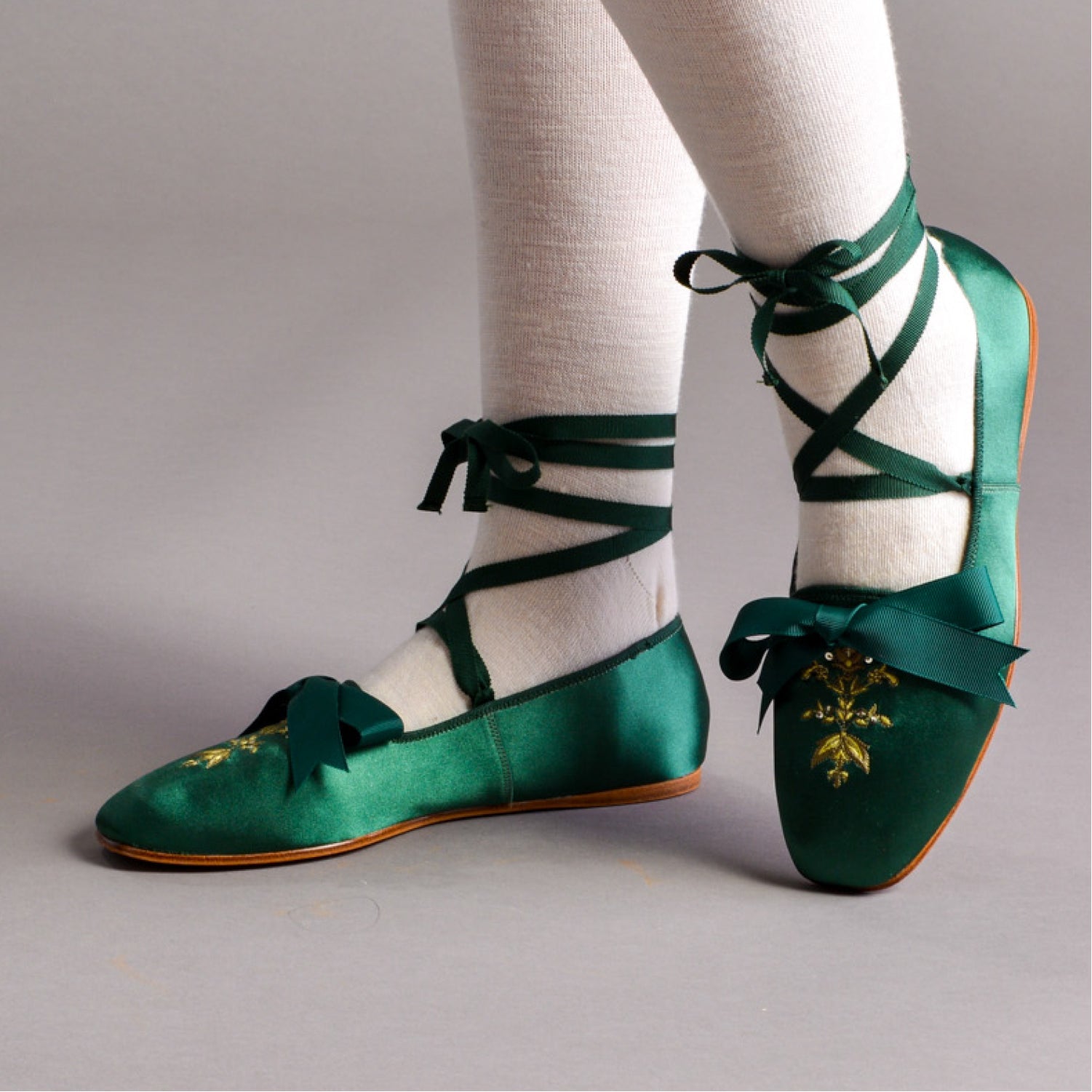 Bring your Regency dreams to life with the perfect pair of delicate dancing slippers. The Penelope slippers offer beauty, comfort, and versatility with so many color pairings, ways to wear the ribbons, and a soft yet durable construction.