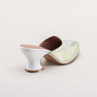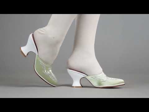 Antoinette 18th century mules present a gorgeous opulence in fancy footwear for your Georgian era impressions. Correct for c. 1700 - 1770s, these elegant backless heeled slippers are the ideal choice for fancy gowns fit for Versailles, with a superbly balanced French heel, leather lining for easy walking, and a softly pointed toe.