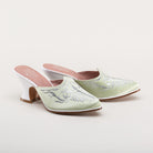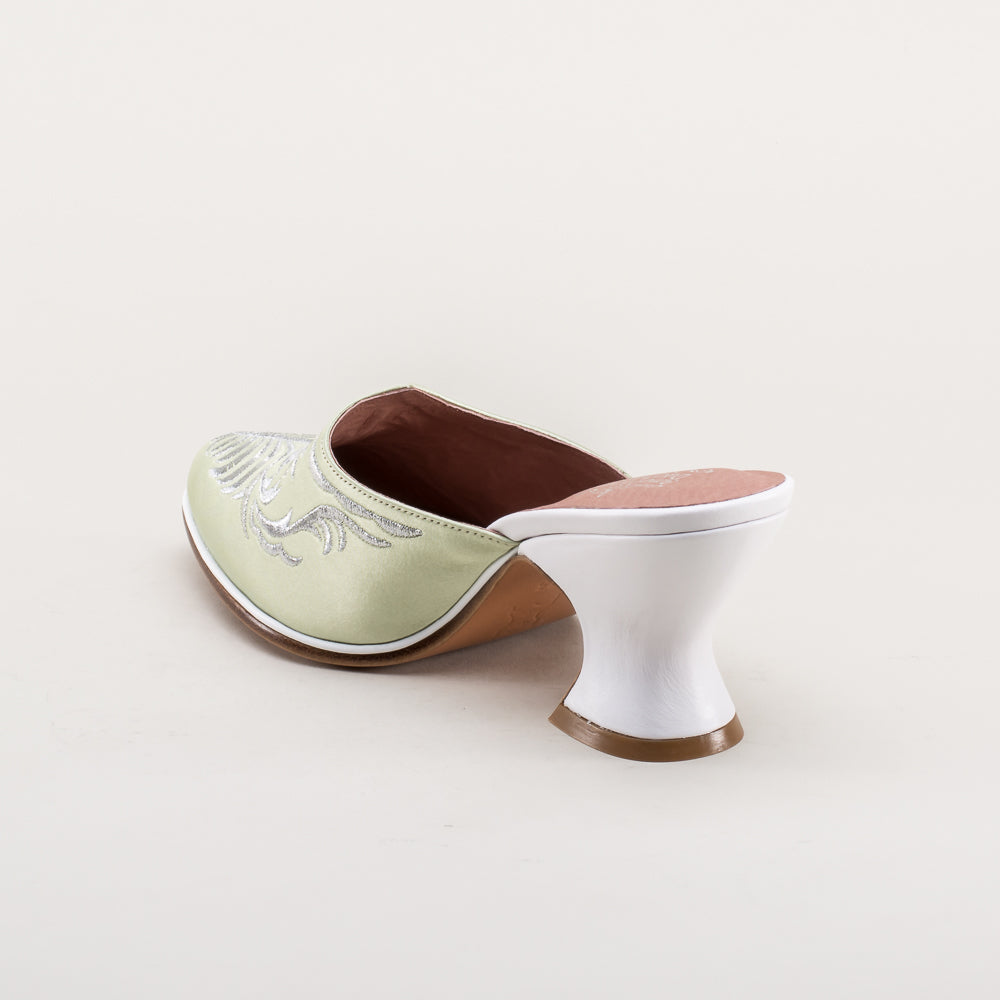 The Antoinette mules are made of durable materials specifically to withstand both indoor and outdoor wear, so don't be afraid of ruining your shoes between carriage and palace. These beautiful slippers are easily slipped on or off when fully dressed - no bending down to fasten buckles or ties - and the real leather lining keeps them securely on your feet.