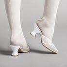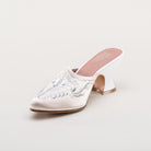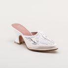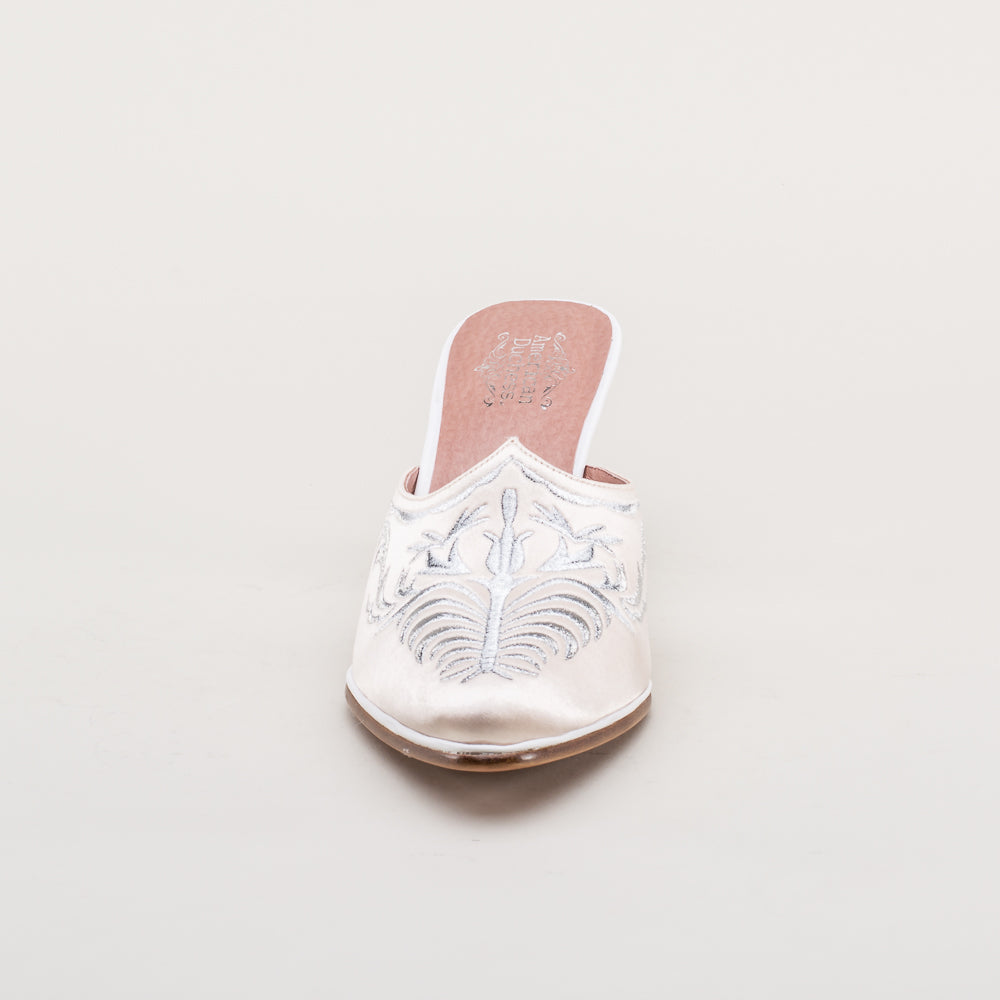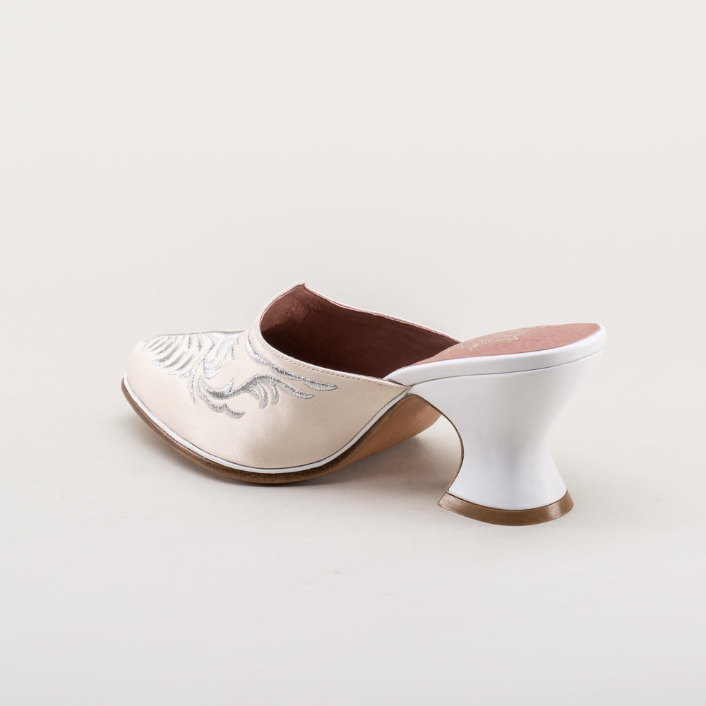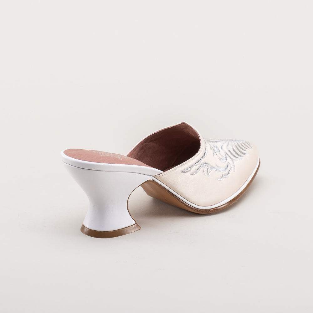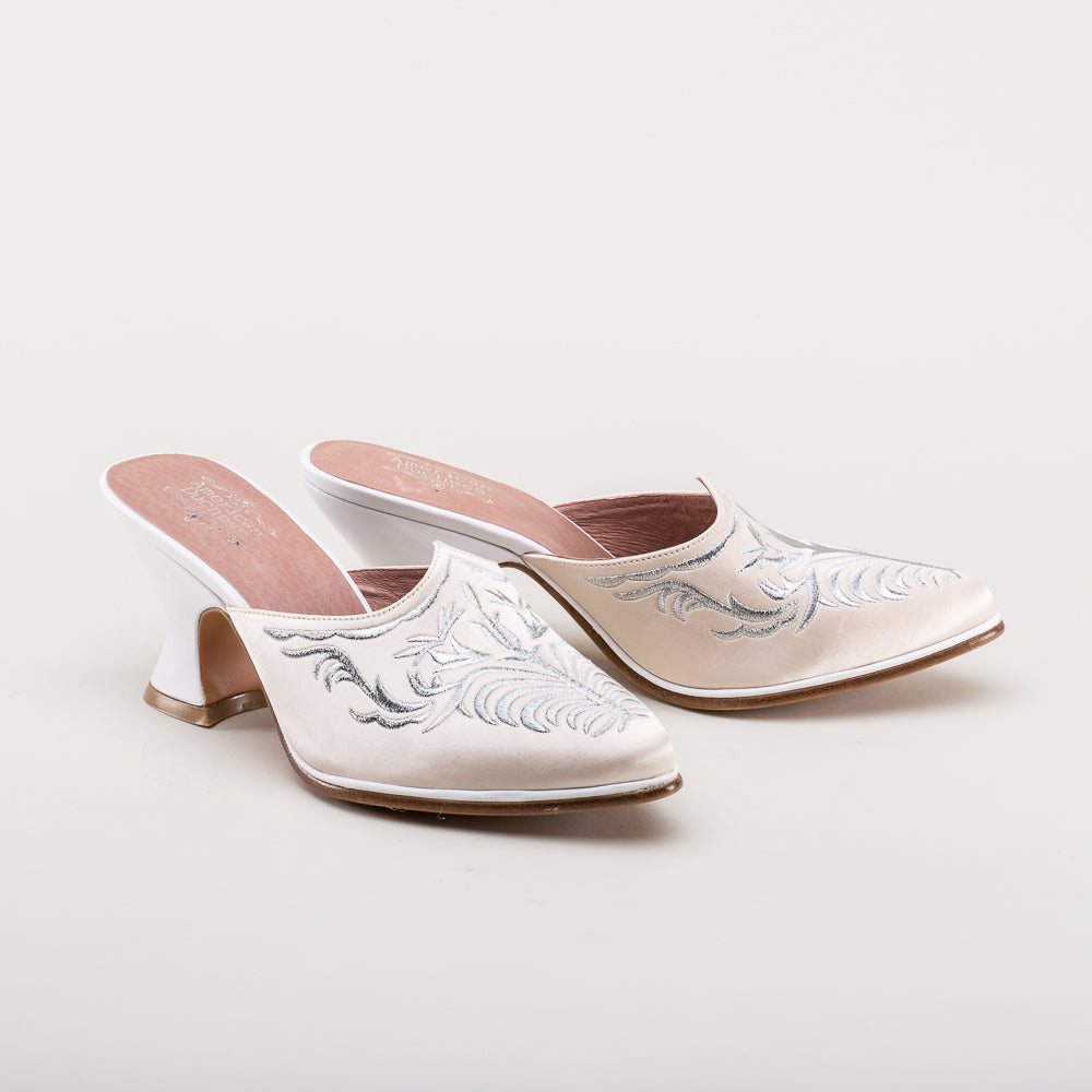 The Antoinette mules are made of durable materials specifically to withstand both indoor and outdoor wear, so don't be afraid of ruining your shoes between carriage and palace. These beautiful slippers are easily slipped on or off when fully dressed - no bending down to fasten buckles or ties - and the real leather lining keeps them securely on your feet.