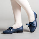 These slip-on shoes are accurate for c. 1790 - 1820. They feature an all leather upper with bound edges and a grosgrain ribbon tie on the vamp. The lining and soling are both leather, with the edges of the sole and stacked leather heel blacked. These beautiful shoes have a rounded toe and can be worn with daywear for women, perfect for Jane Austen, Napoleonic Era, War of 1812, and other Regency events.