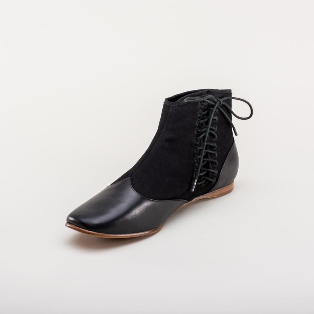 This popular style of Victorian ankle boot is made of a refined yet sturdy cotton sateen upper foxed with smooth calf leather on the toes and heels. The side-lace closure, unique to this period, makes it easy to get your boots on and adjusted just as you like. Wear Keckley Victorian boots for both day and evening dress, outdoor or indoor events, or with modern outfits for a secret nod to the past.