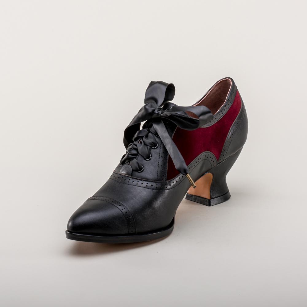 Lucille Edwardian Oxfords (Black/Burgundy)