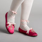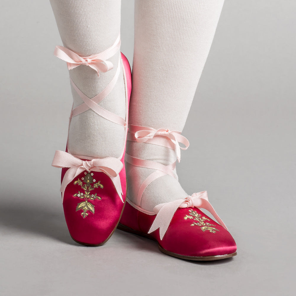 Bring your Regency dreams to life with the perfect pair of delicate dancing slippers. The Penelope slippers offer beauty, comfort, and versatility with so many color pairings, ways to wear the ribbons, and a soft yet durable construction.