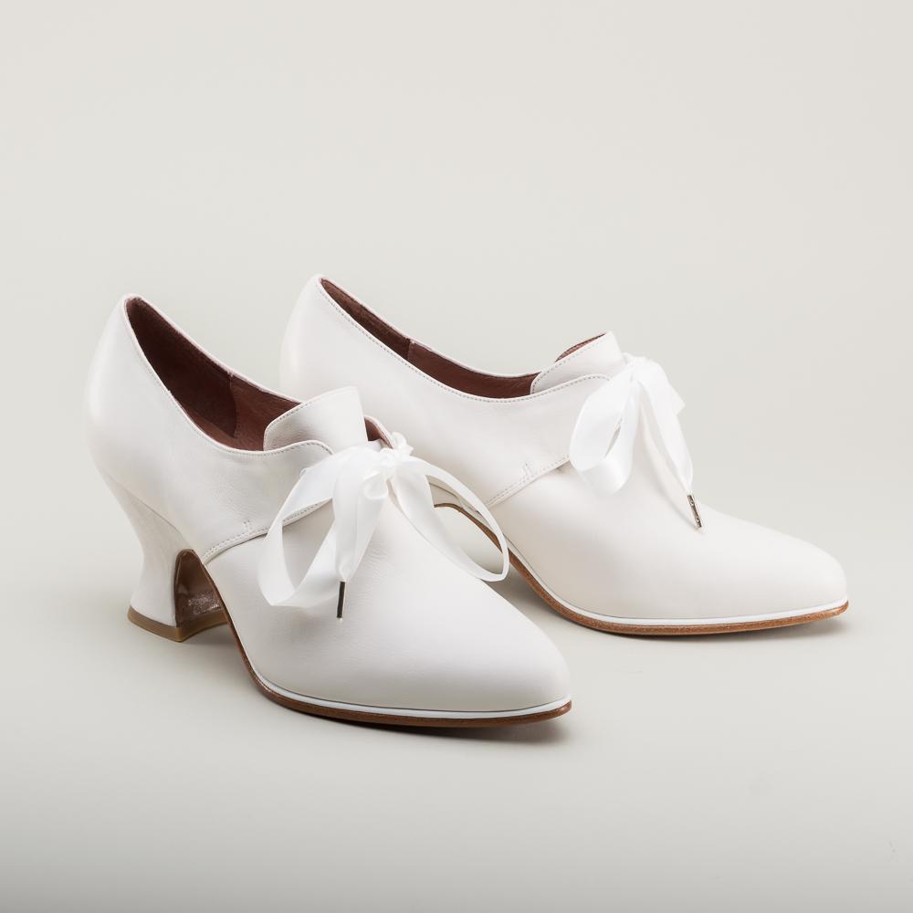 Named for the famous Madame de Pompadour, these heels are closely based on extant early 18th century shoes found in museums, and feature an easy tabbed closure that can be laced with your favorite colored ribbon, cockade, or pom-pom decoration.