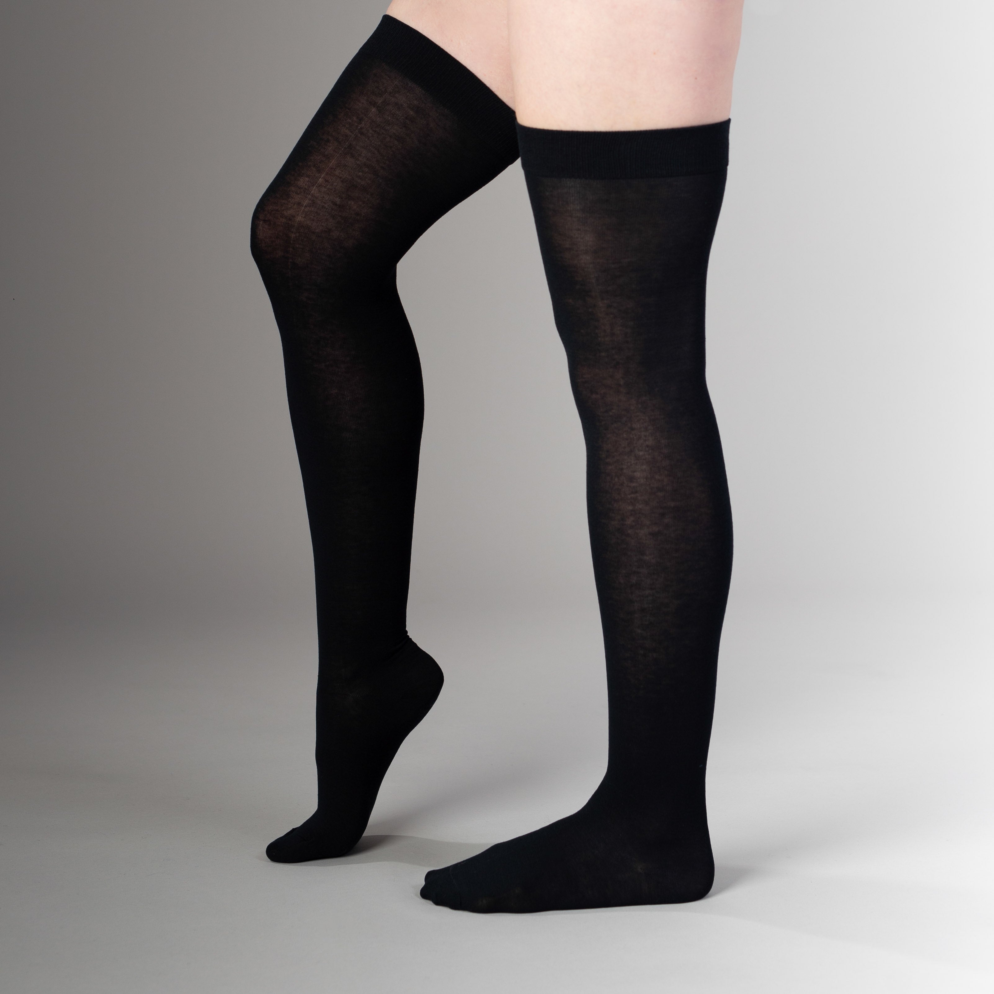American Duchess' exclusive silk stockings are perfect for historical and vintage ensembles. These soft and opaque stockings are designed with extra stretch for a comfortable fit, and they reach up to mid-thigh on most. Secure your silk stockings with suspension garters, roll garters, or decorative garters of your choice.