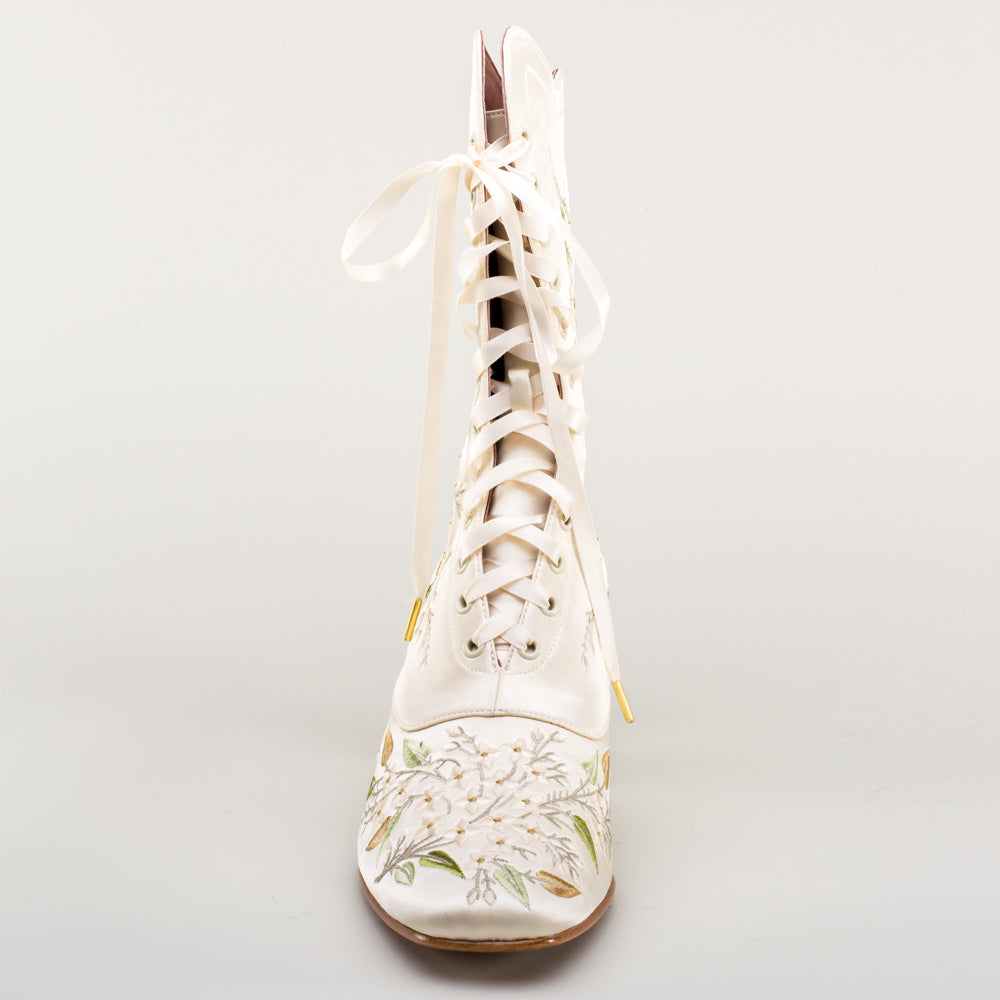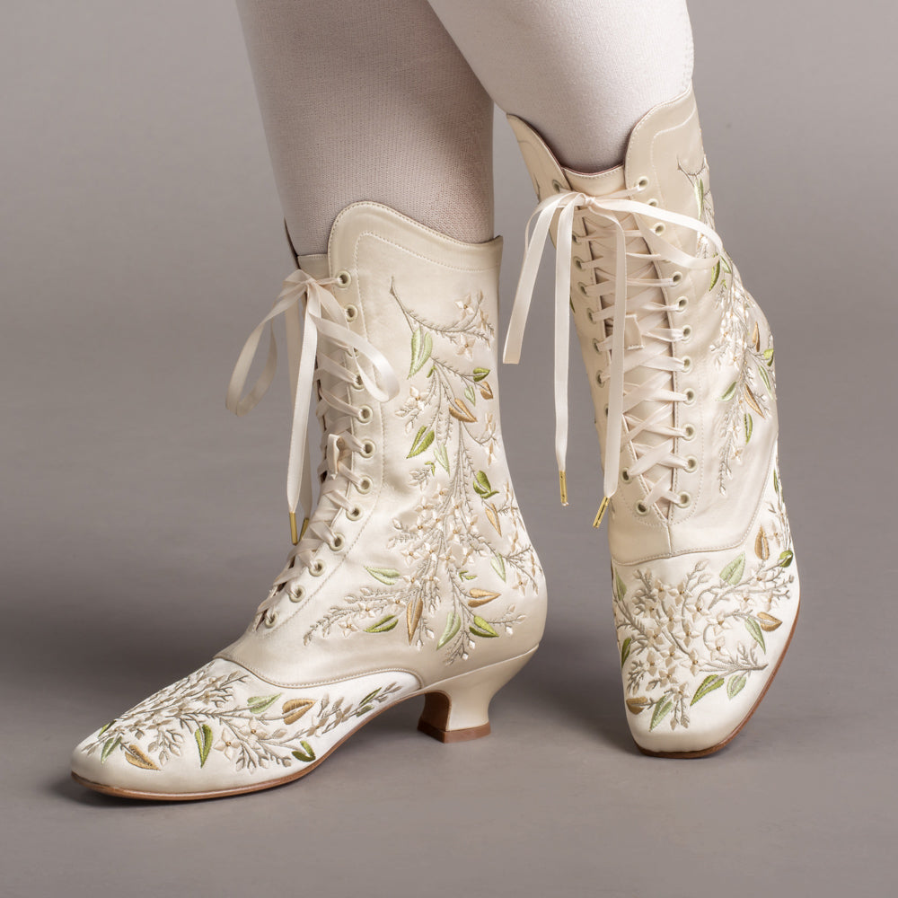 Are you in search of unique and interesting bridal shoes to add a bit of interest or quirk to your wedding gown? Perhaps you are having a historical, vintage, or aesthetic wedding and are looking for wedding heels with a bit of pop. We have a lovely collection of white, ivory, and blue pumps, oxfords, and boots in a variety of shades, all with interesting historical details, silhouettes, and heels. We may just have the perfect bridal shoes for you!