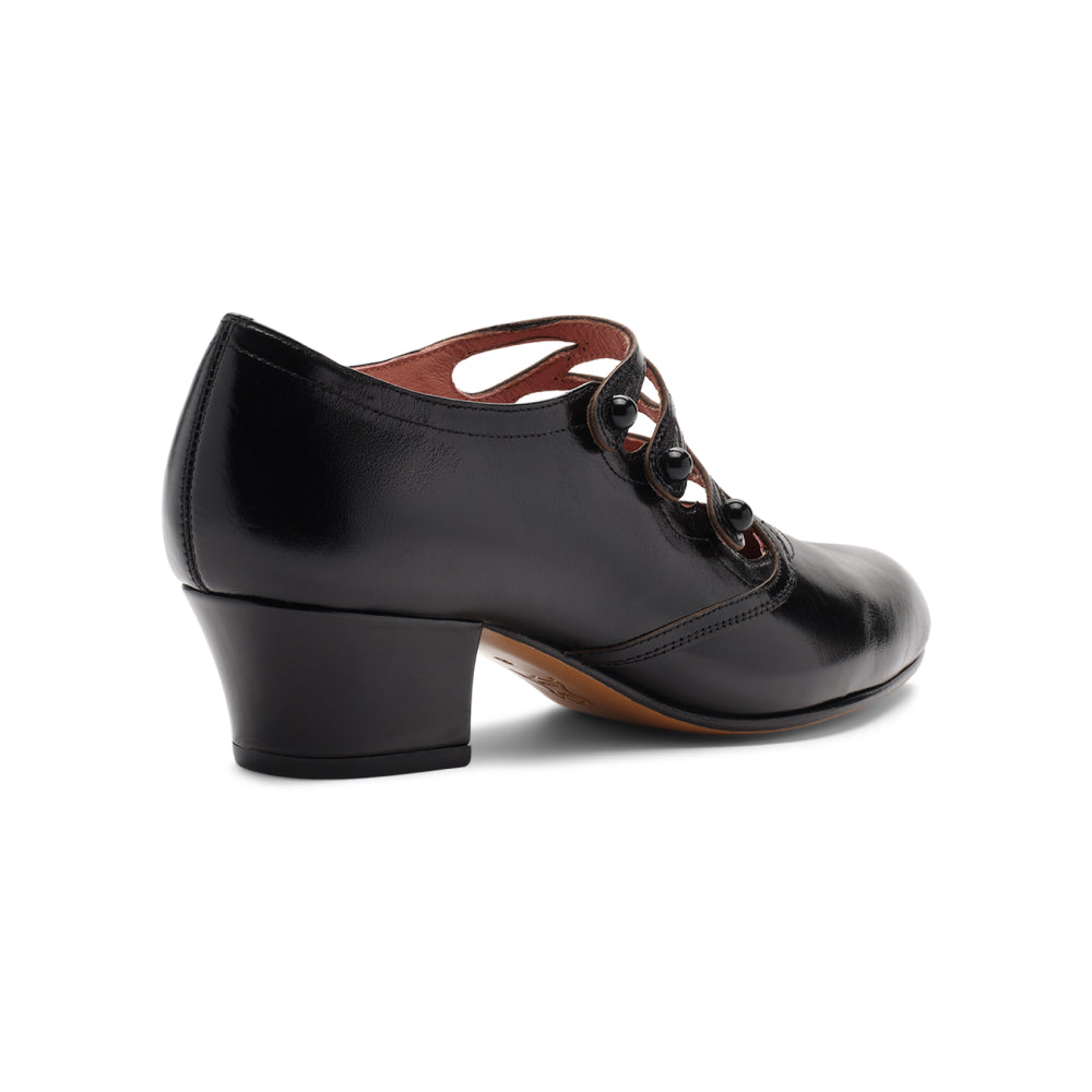 Gloria seamlessly combines all of the elegance of 1910s/1920s footwear with practicality, resulting in a refined shoe fit for all-day wear. Finely detailed leather straps with period-authentic cutouts glide gracefully over the vamp and close with functional matching buttons. Gloria's comfortable almond toe and stable, 1.6"/4 cm Cuban heel make this shoe suited for promenades on the boat deck and dancing the night away. This wonderfully versatile shoe is accurate to the 1910s all the way through to the 1940s. Gloria is available in both standard and wide width.