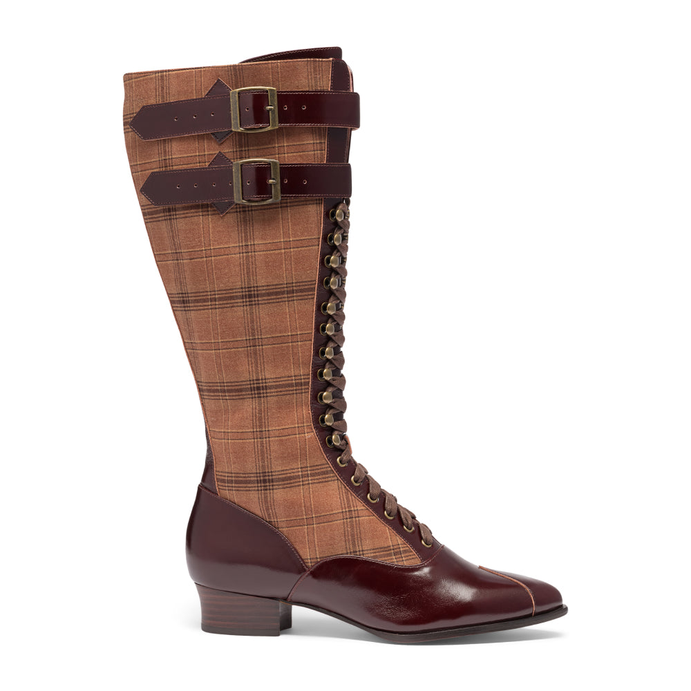 Cambridge Edwardian Bicycle Boots Wide (Brown/Plaid)