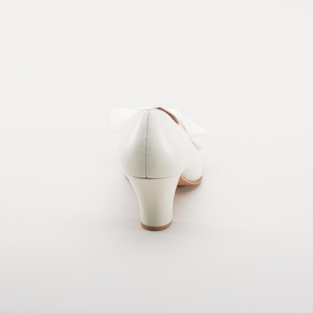 Glamour and practicality pair perfectly with the beautiful Hazel slip-on pumps. Glossy leather, an almond-shaped toe, 2.5 in / 6.35 cm repro heel, and the cutest little ribbon bow tie make these beautiful shoes perfect for the 1920s all the way through to 1950.